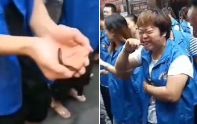 綜合陸媒報導,有員工爆料,該畫面是貴州一家建材行的處罰方式,只要業績沒有達標,就要忍受這樣的對待,而且當中有好幾名都是實習生。從畫面中可看見,老闆拿著裝滿泥鰍的桶子,接著一隻隻放在每位「業績未達標」的員工手上,隨後又發了一碗鴨血給每個人,在一旁監視大家確實吞下肚。