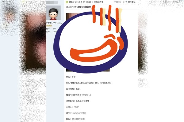 判決書內容指出,何男透過臉書與少女多多相識,明知多多當時年僅15歲,但卻還是幫忙PO出魚訊拉客。107年4月27日,何男得知多多有意援交,當即利用手機在「貓都論壇」幫忙曝光,以「基隆幼齒魚」為題發文寫下魚訊「魚名:多多、身高/體重/年齡/罩杯:155/40/18歲/C杯、時間/價格/次數:4K/2H/1S(即每次性交代價新臺幣4000元,時間為2小時)、注意事項:新魚出沒請愛惜!」文末還留下多多LINE聯繫方式、電話號碼。