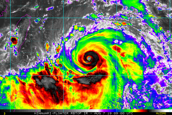 ▼利奇馬颱風眼清晰,7級暴風半徑已達220公里。(圖/翻攝RAMMB)