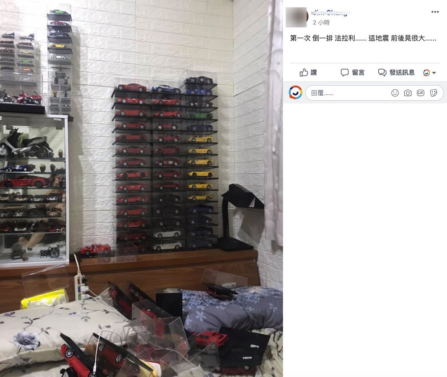 ▲▼網友的佛牌整面搖晃讓她以為顯靈;還有法拉利模型車也倒掉一整排。