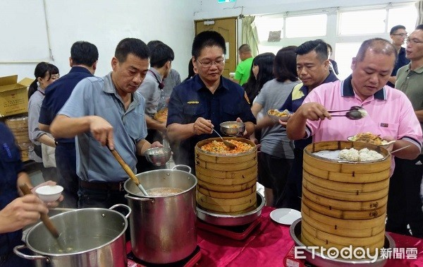 郭森永說,現今警察勤務日漸繁重,有時為了工作甚至日夜顛倒,無法陪伴家人。今天適逢父親節,仍有不少同仁無法與家人一起過節,因此特別舉辦這場自助餐會來慰勞,也希望這次的活動能成為他們難忘的回憶,員警們對這豐盛的中、西式料理贊不絕口,認為菜色不輸大飯店。