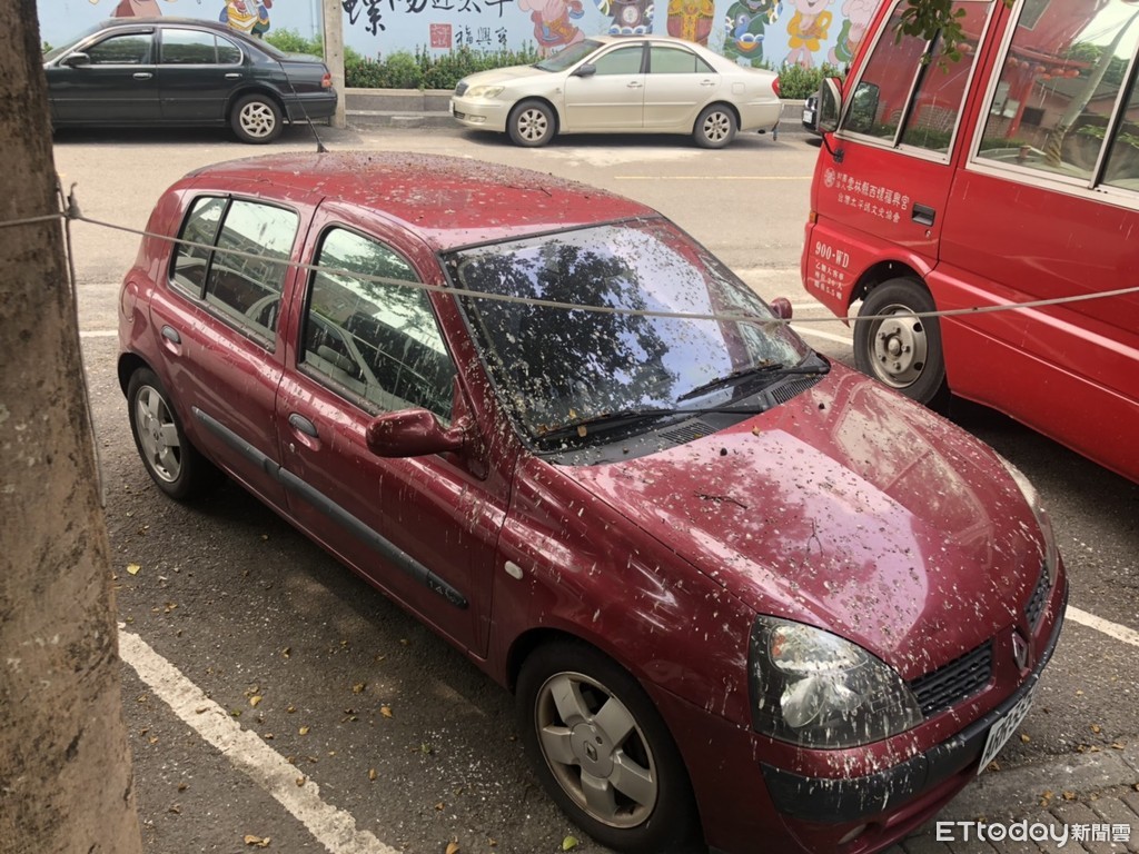 據了解,該車主上台北,這部車已停在現場約一周都未移動,研判是大批小鳥集中棲息在車頂上的樹上排泄所造成,等到車主回來看到自己的愛車變成這副模樣,想必心中會對這些可愛的小鳥,充滿了滿滿的怨恨吧!