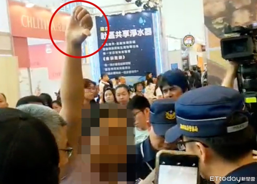 隨後輪到韓國瑜上台致詞,但韓上台講到一半時,場外突然出現一名婦人高舉「倒讚」手勢,時間還長達近30秒,引來不少媒體注意,員警擔心發生衝突,趕緊上前委婉請婦人離開,但韓國瑜似乎沒有注意到該名婦人。
