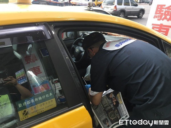 ▲鑑識人員在計程車上蒐證。(圖/記者陳以昇攝)