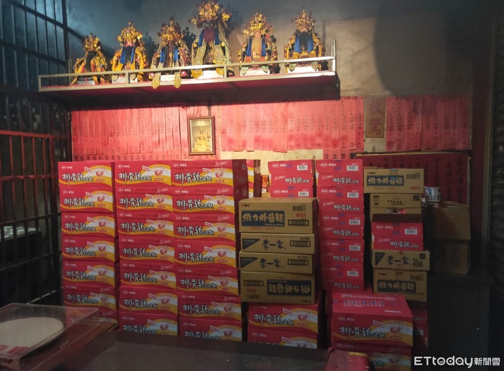 ▲南投縣中寮鄉石龍宮以「泡麵土地公廟」聞名,信徒以泡麵當供品,並留下來讓其他信徒分享,卻有民眾專門打包高價泡麵,目擊的信眾相當氣憤。(圖/石龍宮吳姓廟祝提供)
