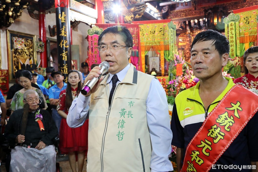 ▲台南市長黃偉哲到北區元和宮全台白龍庵參加「宴王祀王大典」,感謝陳欽明教練為保留正統將團文化的用心與堅持。(圖/記者林悅翻攝,下同)