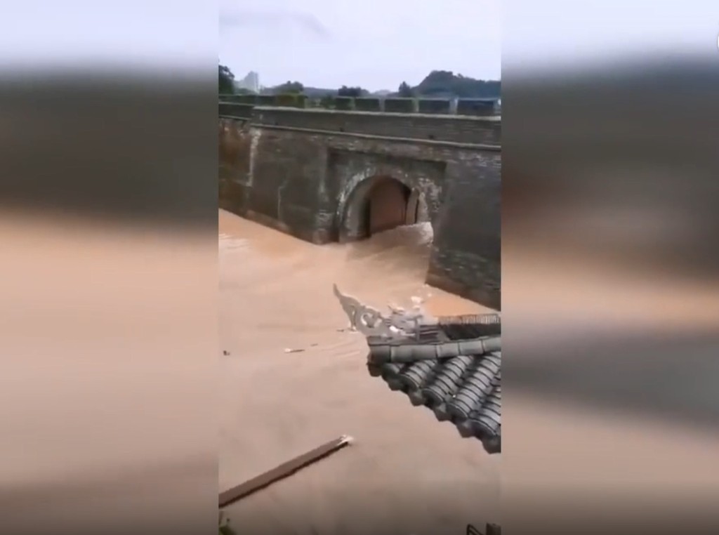 ▲受利奇馬颱風影響,臨海古城被淹了。(圖/翻攝自微博)