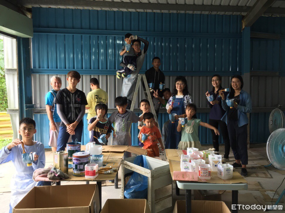 ▲孩子選擇鐵皮屋色彩、完成空間丈量,並由青少年親自參與規劃,從採買油漆工具、詢價、試刷,到帶領小小孩起刷油漆。