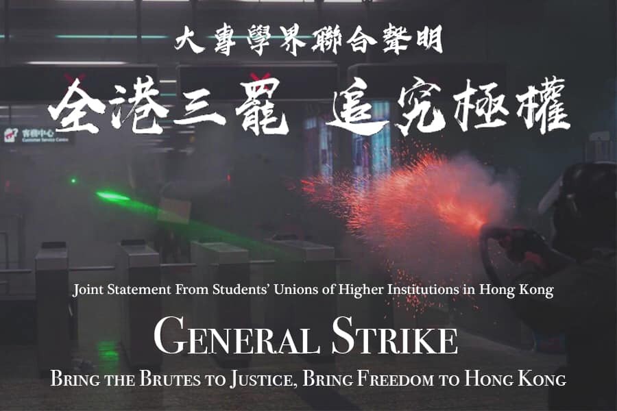 香港示威者昨(11)日發起「深水埗遊行」,許多地區爆發警民衝突導致多人受傷;其中,一名女性示威者遭警方用布袋彈射穿護目鏡,引發爭議。針對警方的無差別攻擊行為,除了香港醫護界發起罷工外,11間香港大專院校學生會也呼籲,即日起將舉行「無限期三罷」。