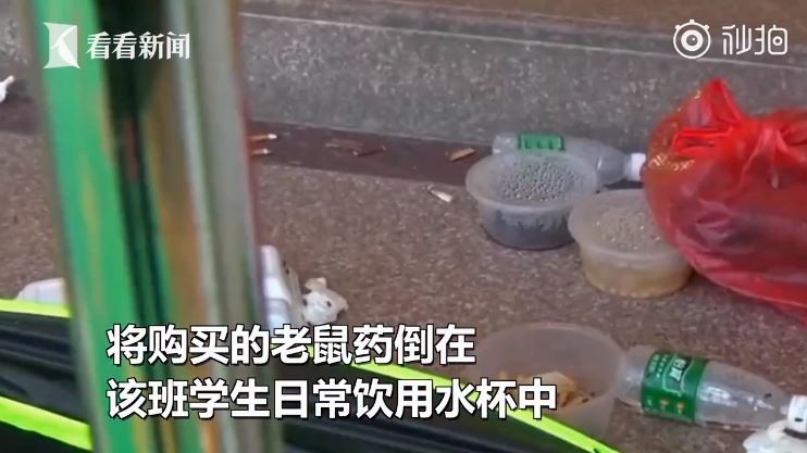 ▲林姓老師將老鼠藥投進學生水杯裡。(圖/翻攝自《看看新聞》,下同)