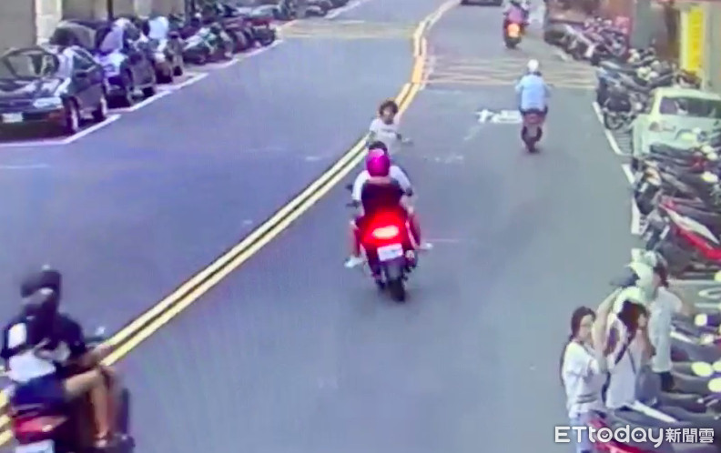 ▲余婦違規穿越雙黃線,遭許姓少年撞上 。(圖/記者陳以昇翻攝,下同)