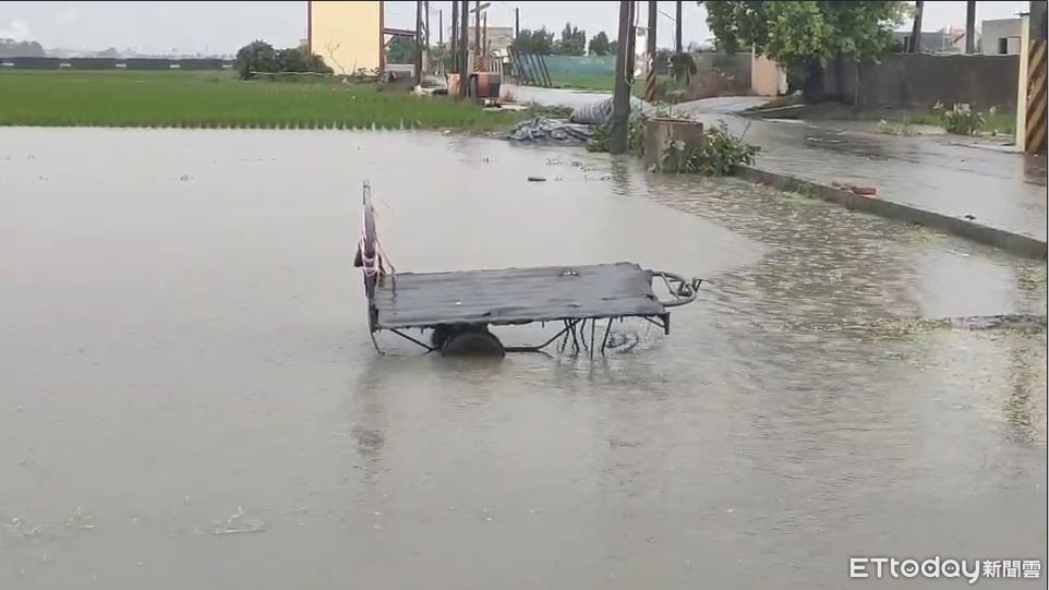 ▲道路也因雨勢狂淹。(圖/記者傅誠攝)