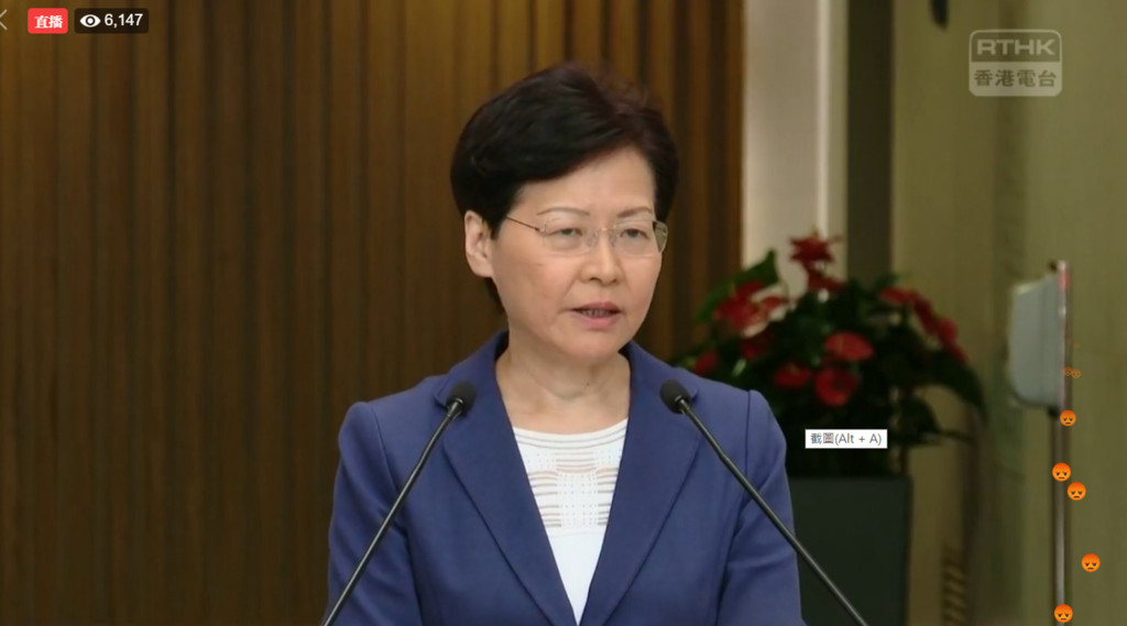 ▲香港特首林鄭月娥在8月11日警民衝突後首次展開記者會。(圖/翻攝RTHK香港電台視像新聞)