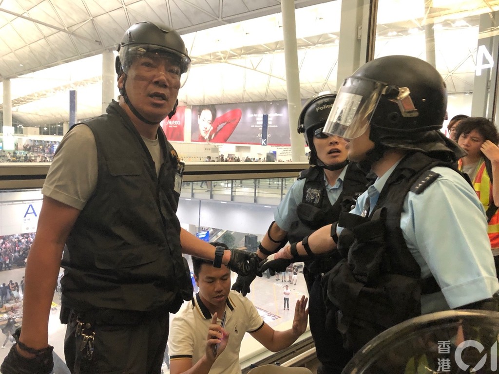 有示威者向警察投擲雜物,追截警車。一度進入機場的警員,已全部退回警車內。