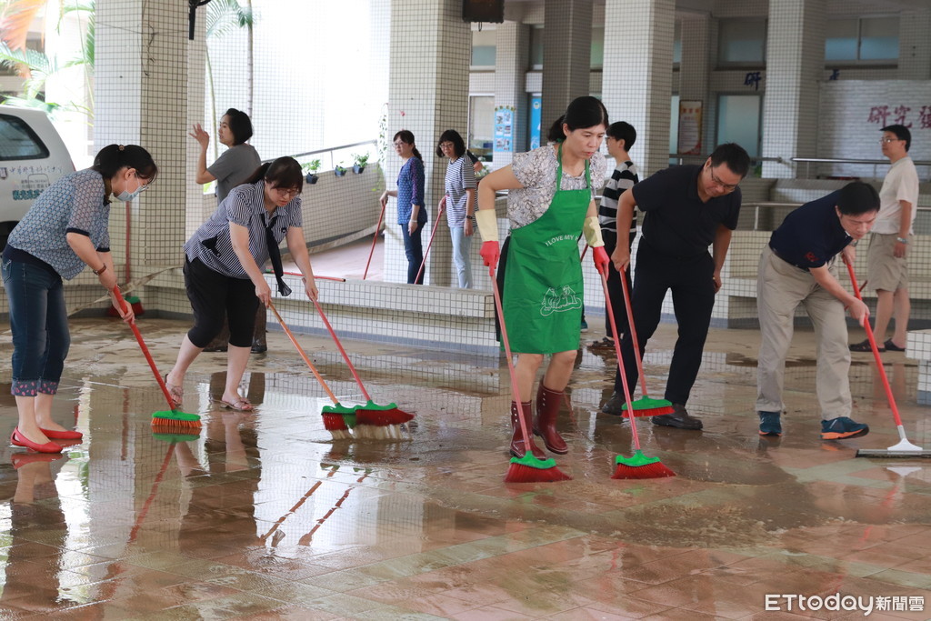 台南市豪大雨造成多處淹水,中華醫事科技大學無能倖免,8月14日全體教職員工總動員,到校進行災後清理,在國軍協助下,以半天時間完成校園清理及復原工作,曾信超校長與鄭啟瑞董事長感謝同仁協力及各界對中華醫大關心,並籲請家長和學生放心,學校已在最短的時間內復原,各項校務運作正常,不受影響。