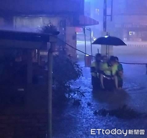員警便進入屋內查看,看見屋內有1名老婦人(殘障無法行走)與1名外勞在床上呼喊,因水勢過大過深,員警為免憾事發生,便立即背負老婦人涉水脫困,送至所內安置,並立即通知家屬到所內陪同,家屬得知警方之積極善心舉動表達萬分感謝,也再三感謝警方熱心協助。