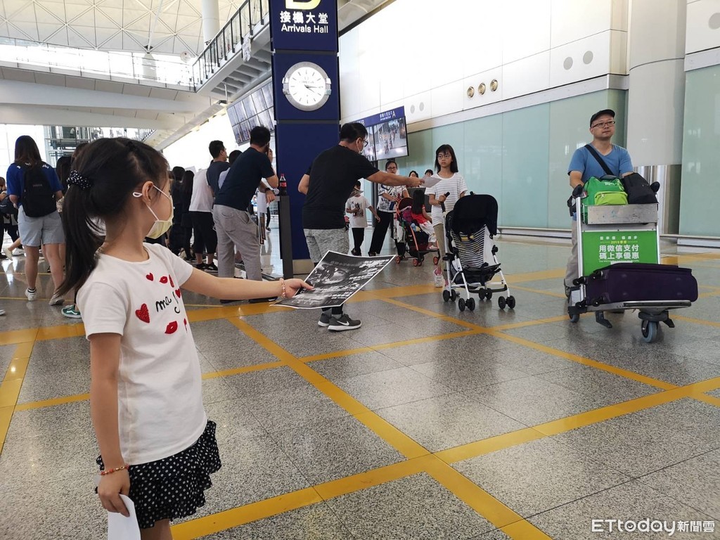 另外,現場有一名媽媽帶著小孩到現場發送傳單,要讓各國旅客知道他們為什麼要在這邊抗議。對此,有不少民眾給予支持跟鼓勵,而目前現場大廳沒有看到警察,只有在二樓進機場大廳看到約7~8名警察,現場仍算和平。
