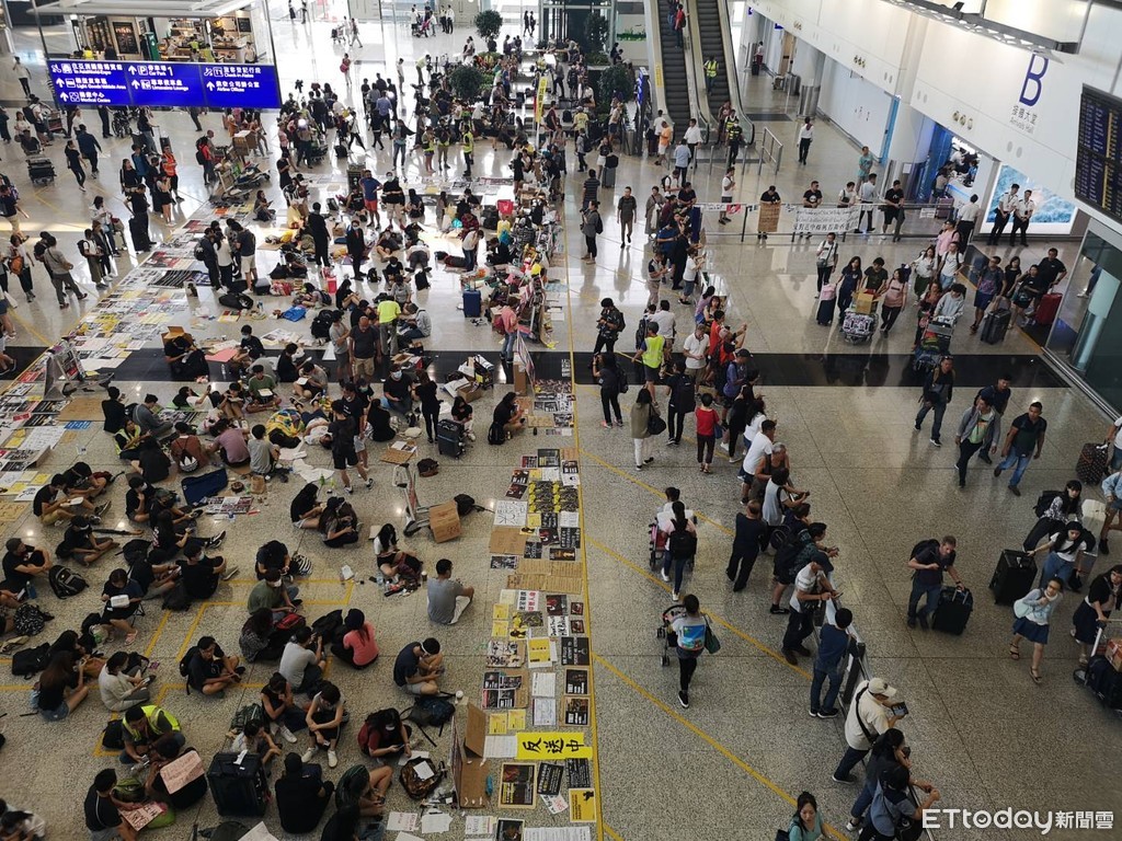 ▲ 大批遊客受到集會影響滯留機場。(圖/記者黃彥傑攝)