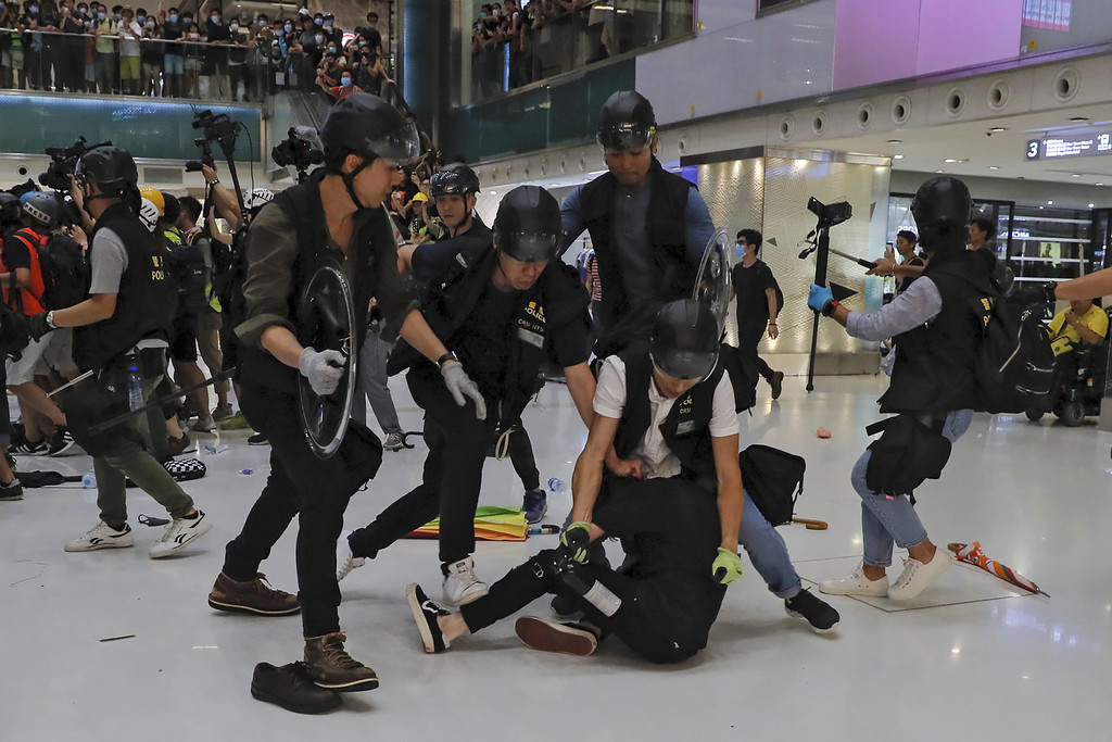 ▲警察暴力最近成為全球熱議的話題。圖為今年7月時,香港警方在沙田一處商場內驅散示威者時的畫面。(圖/達志影像/美聯社)