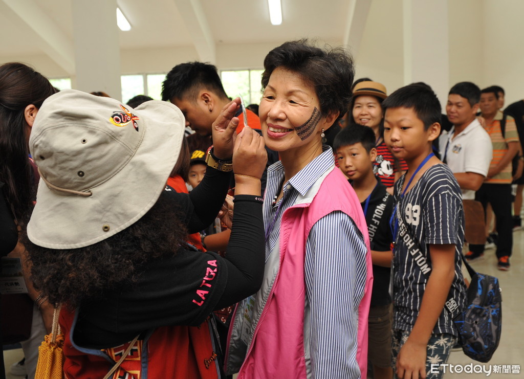 ▲海基會董事長張小月體驗體驗排灣族婦女的紋面習俗。(圖/海基會提供,下同)