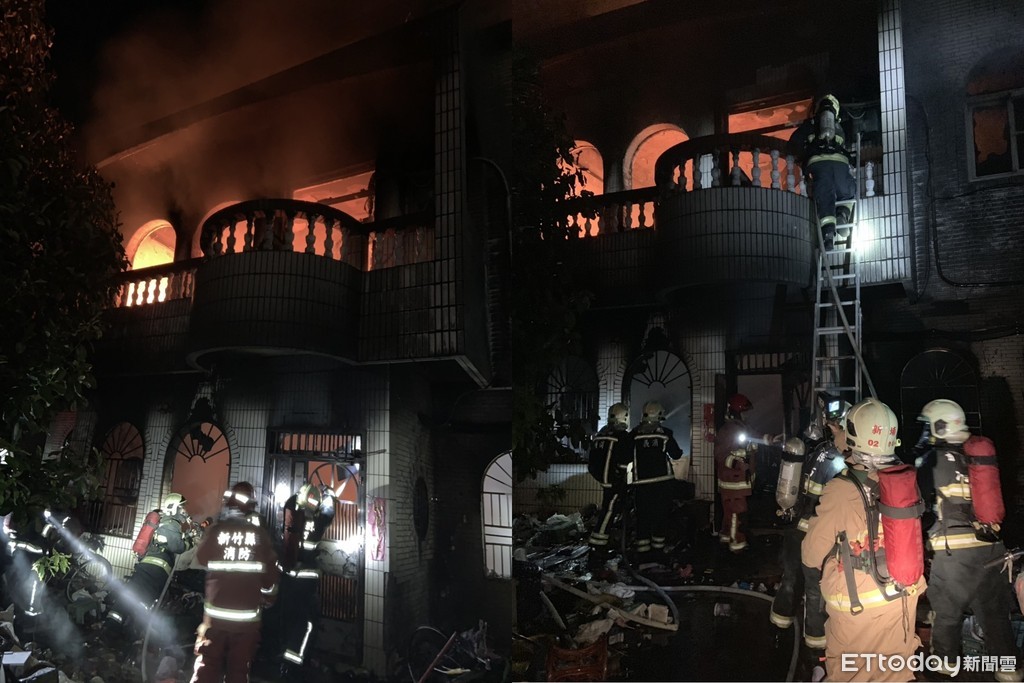 新竹縣消防局15日凌晨0時17分接獲民眾報案發生火警,隨即派員前往搶救,但抵達現場時整棟透天厝已經全面燃燒,於是趕緊調派新埔、芎林以及二重分隊前來支援,總計出動14輛消防車、33名人力滅火。