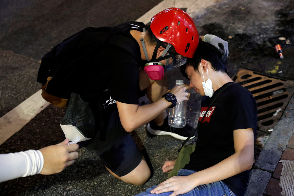 ▲香港警方深水埗推進,無人街射多枚催淚彈。(圖/路透)