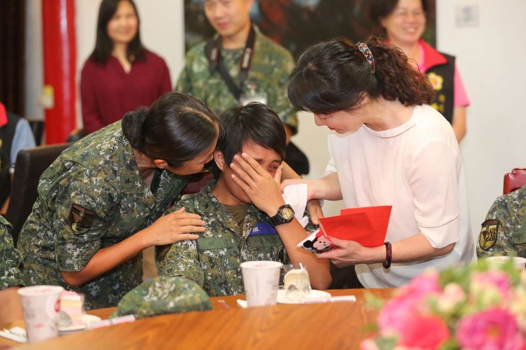 家人的溫暖瞬間感染現場,除了讓新竹子弟們又哭又笑,連部隊長官、市府主管們也落淚,部隊長官還笑說,本來以為是要來放市政宣導片,「早知道這麼好哭要多準備一些面紙」。