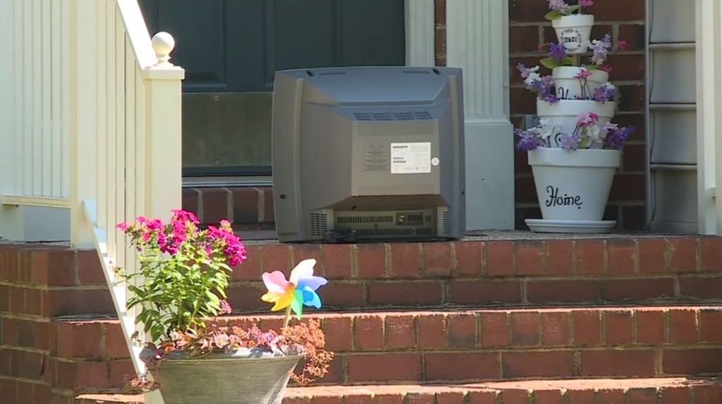 ▲被「電視人」放在前廊的電視。(圖/翻攝自YouTube/ABC7)