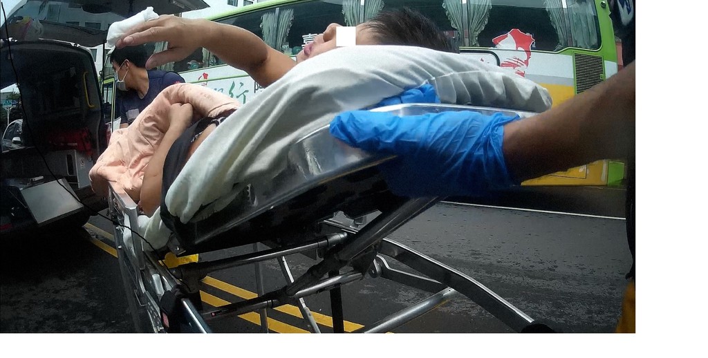 ▲▼ 王姓女騎士被送上擔架緊急送醫。(圖/記者翁伊森翻攝)
