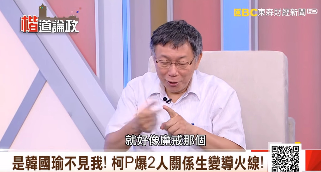 張啟楷復出主持東森財經新節目《楷道論政》,邀請柯文哲接受專訪,17日播出的內容中,他問柯曾暗批韓國瑜「能力可以後天訓練,品德很難」是很重的批評。柯文哲一聽馬上搖手驚呼「不要對號入座」,指的是自己當市長,常說一些幕僚、機要,每天晚上花天酒地,早上7點半到市長室開會,就會打瞌睡。