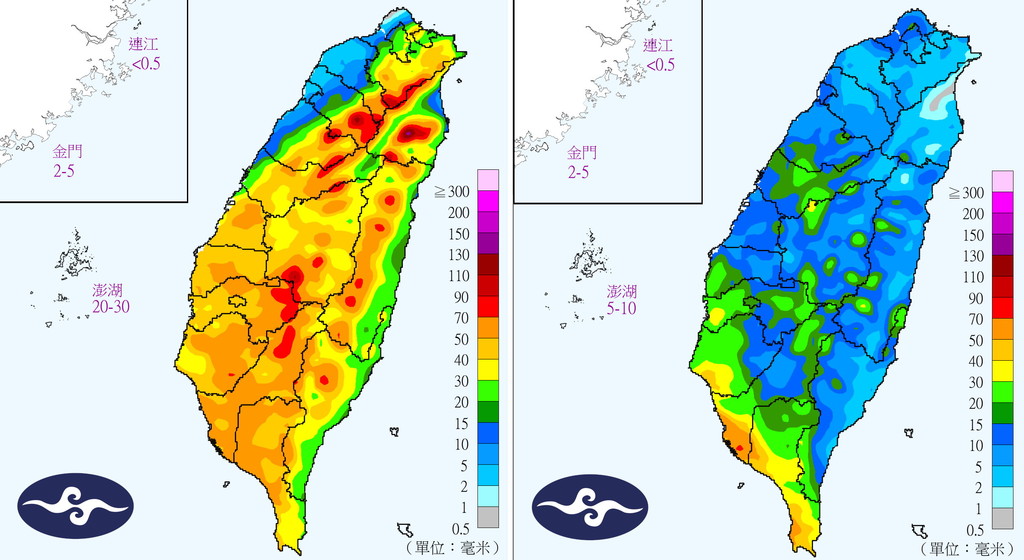 大雨特報:台中市、彰化縣、雲林縣、嘉義縣、嘉義市、台南市、高雄市、屏東縣、澎湖縣