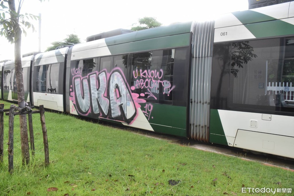 高雄輕軌遭人塗鴉!3日警方接獲捷運輕軌公司報案,發現前鎮機廠輕軌3節車廂遭不明人士噴漆塗鴉。經過濾相關資料比對,掌握一名19歲王姓男子涉有重嫌帶回偵辦,他聲稱覺得好玩,沒有其他意圖,另還有同夥的3名犯嫌,警方正持續追查當中。