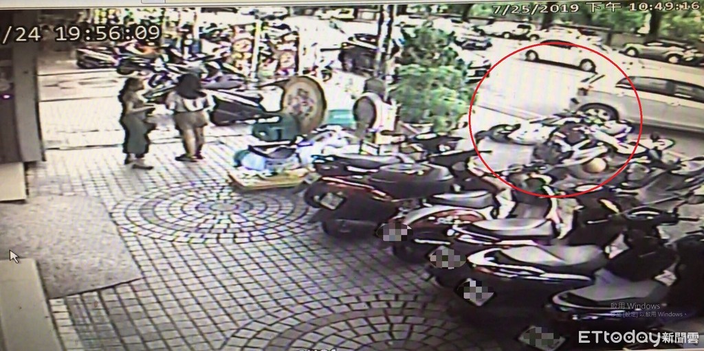 ▲婦人倒車時不慎撞倒停路邊機車,遭監視器拍到。(圖/記者李忠憲翻攝)