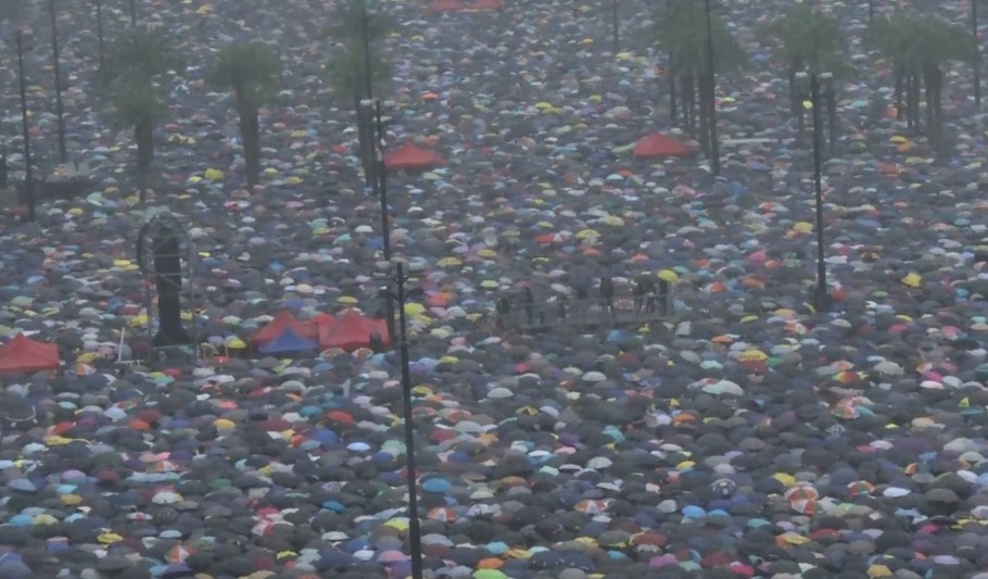 民陣維園集會人潮眾多,民陣副召集人陳皓桓14:40分宣布,6個足球場已經爆滿。《ETtoday新聞雲》現場直擊發現,還有許多民眾從周遭道路湧入維園,就算下雨也持續聚集,期間不斷高喊「香港人加油!」另外何韻詩、黎智英等名人都有出席集會。