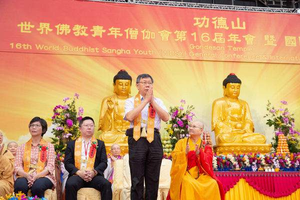 ▲鄭文燦出席世界佛教青年僧伽第16屆年會暨供佛齋僧大會。(圖/桃市府提供)