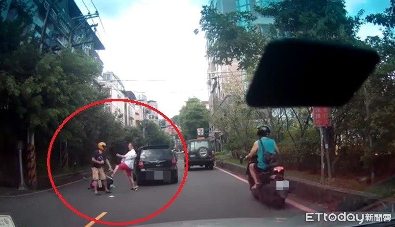 ▲駕駛與騎士爆發行車糾紛,竟然在路中央上演全武行,2人掛彩但和解收場。(圖/記者孫于珊翻攝)