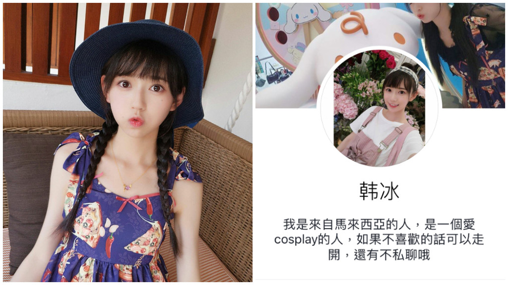 不過有眼尖網友發現,這個臉書帳號在2017年後就沒使用,圖片應該是盜來的;而照片中的正妹其實是中國網紅「許夏幽」,平時喜愛分享cosplay美照和生活大小事,網路上名氣不小,微博加上IG粉絲數達20萬,並非馬來西亞人,「馬來西亞韓冰」之說只是網友惡搞而已。