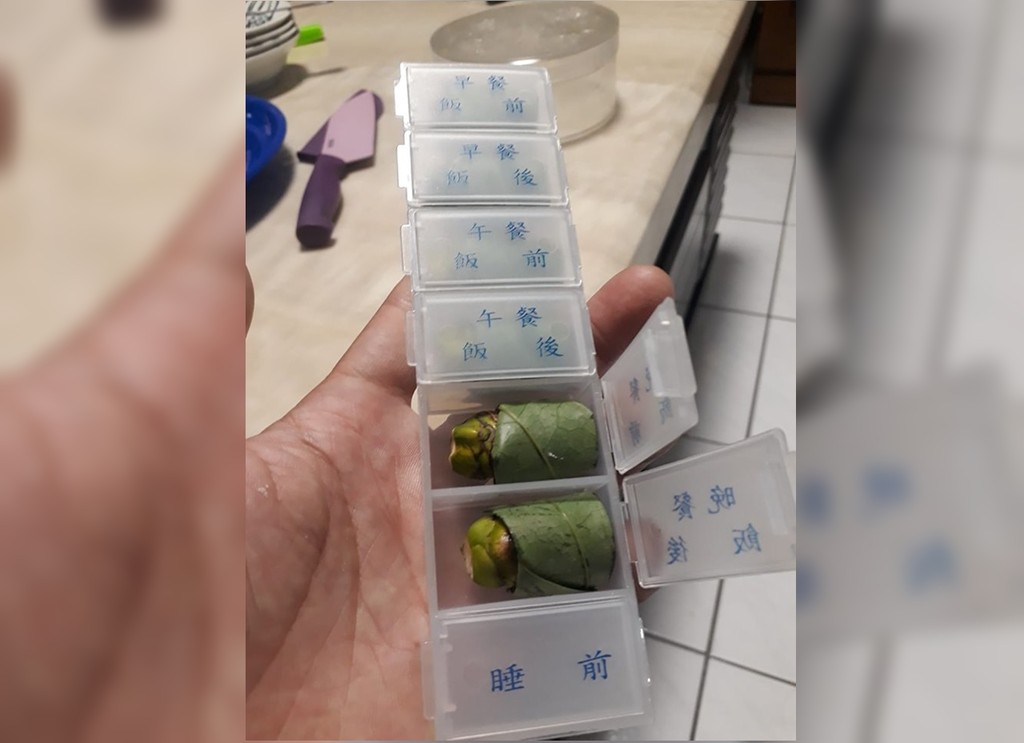 原PO在臉書爆怨公社留言,「我也承諾要戒檳榔了,一定要我戒的那麼沒尊嚴嗎」,接著附上一張老婆專門替他準備的工具,一個有標示早中晚、飯前飯後文字的方塊藥盒,每一個盒子都各放著一顆包葉檳榔,原來他的老婆準備先從「減少食用」開始下手,使得他能夠慢慢戒除對檳榔的依賴。