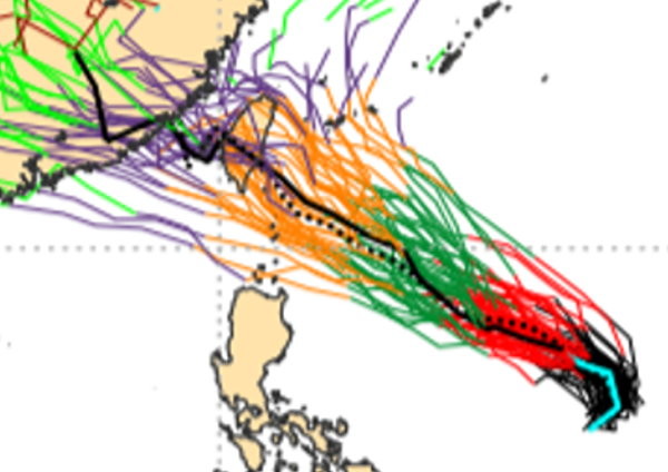 吳德榮說,至於其未來動向,最新美國系集模式(GEFS)因其模擬的中心結構較鬆散,以致模擬路徑大多偏北,通過琉球附近;而加拿大系集模式(GEPS)、歐洲系集模式(ECMWF)則有數量更多的模擬路徑是通過台灣附近。