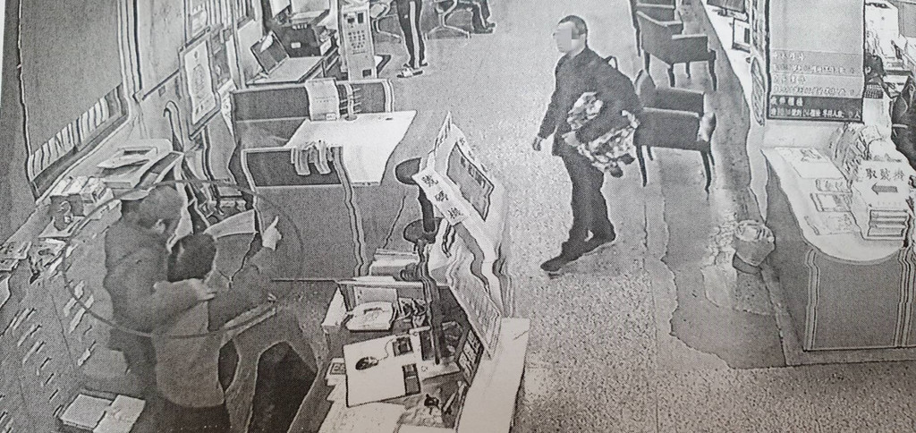 ▲張兄進入服務櫃臺,用手掐住杜女的脖子。(圖/記者陳凱力翻攝)