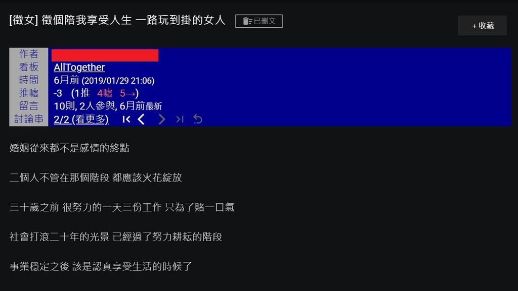 ▲趙男po文徵友要找「一路玩到掛的女人」。(圖/翻攝PTT)