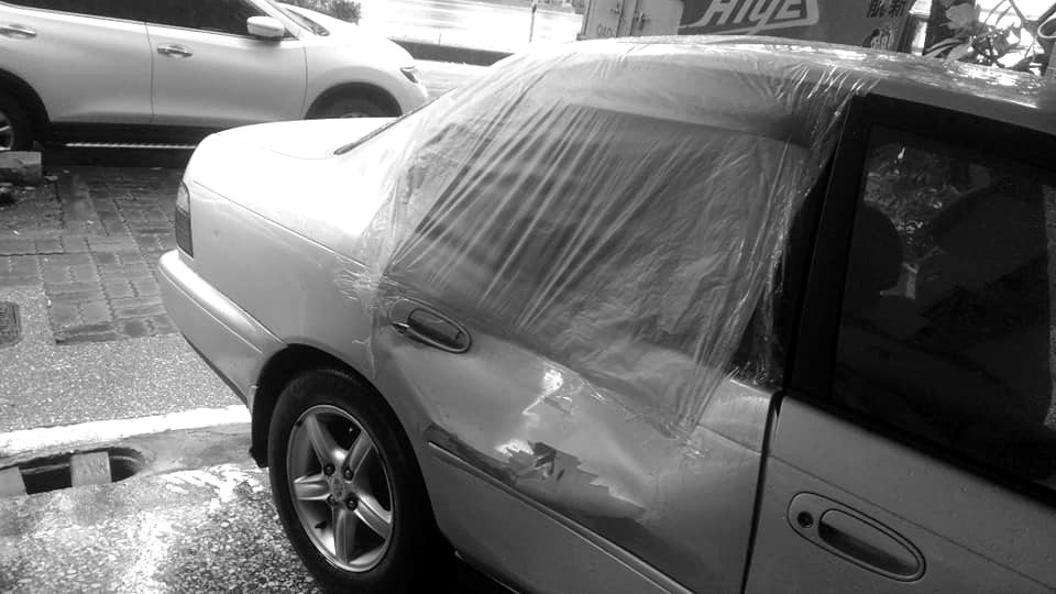 ▲▼原PO的車頂、車門都被撞凹。(圖/翻攝爆料公社二社)