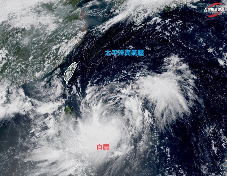 天氣粉專「台灣颱風論壇│天氣特急」則PO出衛星雲圖分析,目前日本到台灣間,沒有雲的地方就是太平洋高氣壓勢力範圍,而且高氣壓正逐漸西伸、增強。但另一方面,白鹿環流也在整合中,兩者就像在競逐,誰動作快,將決定威脅台灣程度,是登陸?還是南修擦邊過?接下來36小時都是關鍵。