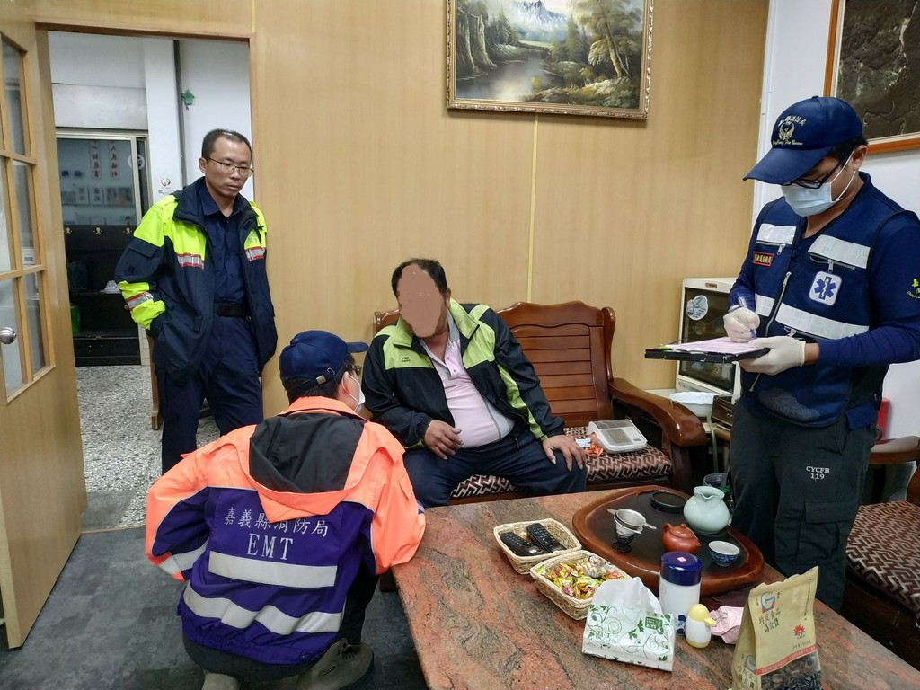 員警於派出所內發現丁姓男子臉色蒼白、精神狀況不是很集中,擔心丁男身體狀況,委婉勸說協助丁男送醫但遭婉拒,只好再行帶領丁男一同至阿里山衛生室讓醫師診治,醫師認其有立即送醫之必要,員警緊急通知119消防隊救護人員前來載送丁男下山就醫,並聯絡其家人至聖馬爾定醫院照料。