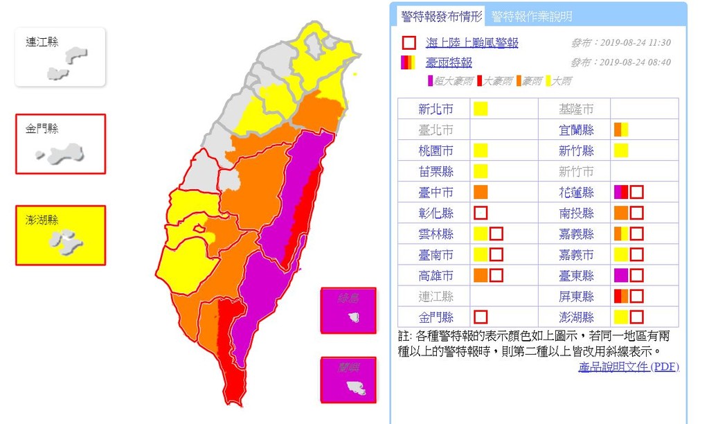 豪雨地區:宜蘭縣、台中市、南投縣、嘉義縣、高雄市、屏東縣