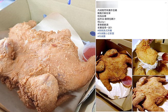 台北人有福了!近期相當夯的「炸全雞」內湖也有了。一位網友在臉書社團「內湖讚」發文「內湖竟然有賣炸全雞」,引起社團轟動。
