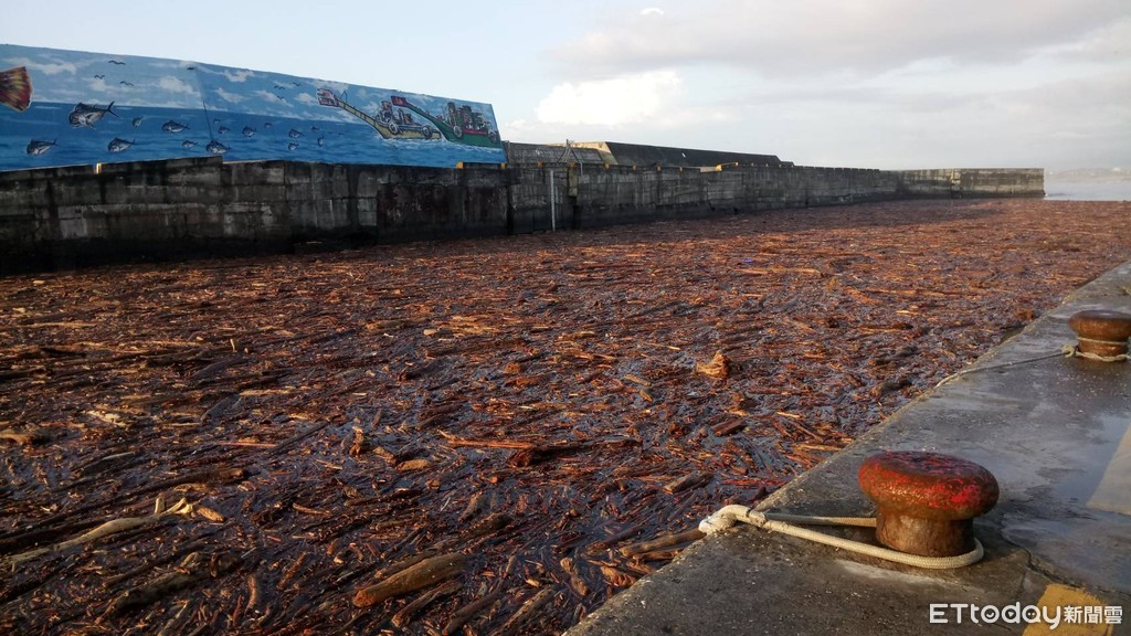 ▲大量漂流木湧入富岡港,阻礙進出。(圖/記者楊均典翻攝)