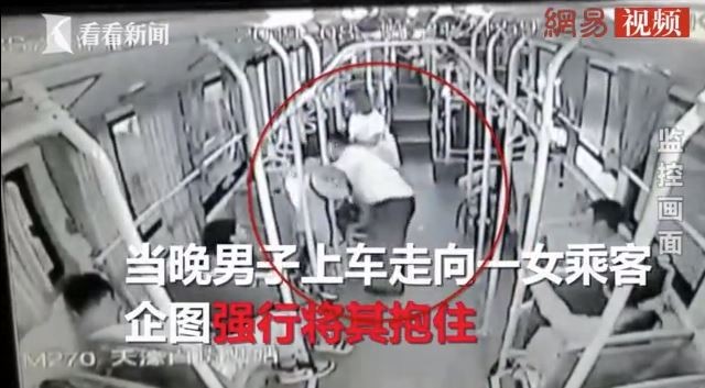 ▲醉漢上車後,直接走向女乘客並試圖強行抱她。(圖/翻攝自網易視頻,下同)