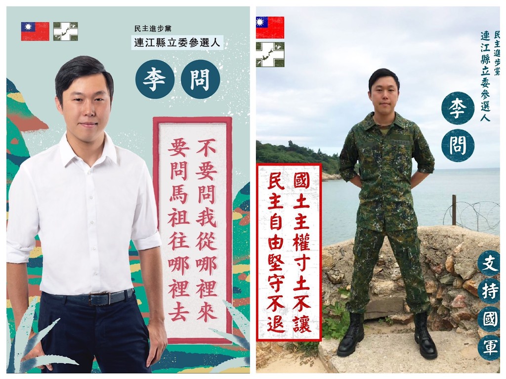 民進黨發言人李問自願出征「超艱困選區」馬祖,挑戰2020立委選戰,如同不可能任務的行為被網友狂讚超有種。李問近日也新成立臉書粉絲專頁,宣告出戰馬祖、挺進鐵藍票倉,文宣上軍裝、國旗都沒少,打造「愛國青年上前線」形象。