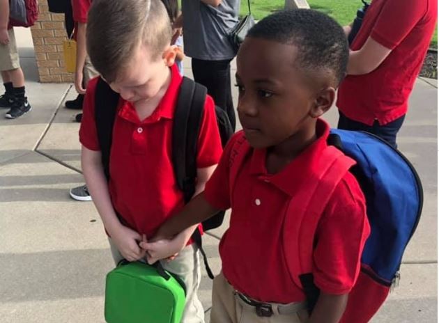 現年8歲的康納(Connor Crites)因為患有自閉症,讓他在開學第一天緊張到在校門口哭了出來。這時,另一名同學克里斯汀(Christian)立刻走上前,緊緊地牽著他的手,帶著他一起走入教室,這幕全被拍了下來,放到網路上後引發討論。康納事後也開心地表示,「謝謝克里斯汀牽住了我的手。」